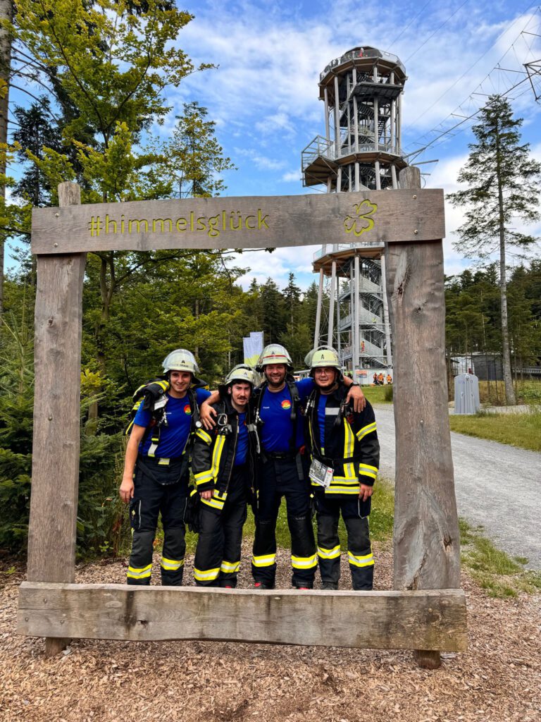 Vier Kameraden nahmen an diesem Wettkampf teil, bei dem es galt unter voller Ausrüstung unter PA den Schömberger Turm zu erklimmen. Die Strecke ist 950 Meter lang und führt vom Kurpark durch den Wald bis zum Aussichtsturm Himmelsglück. 300 Stufen bilden die letzten 50 Meter zum Ziel auf der obersten Plattform. Alle Gondelsheimer Teilnehmer erreichten das Ziel.
